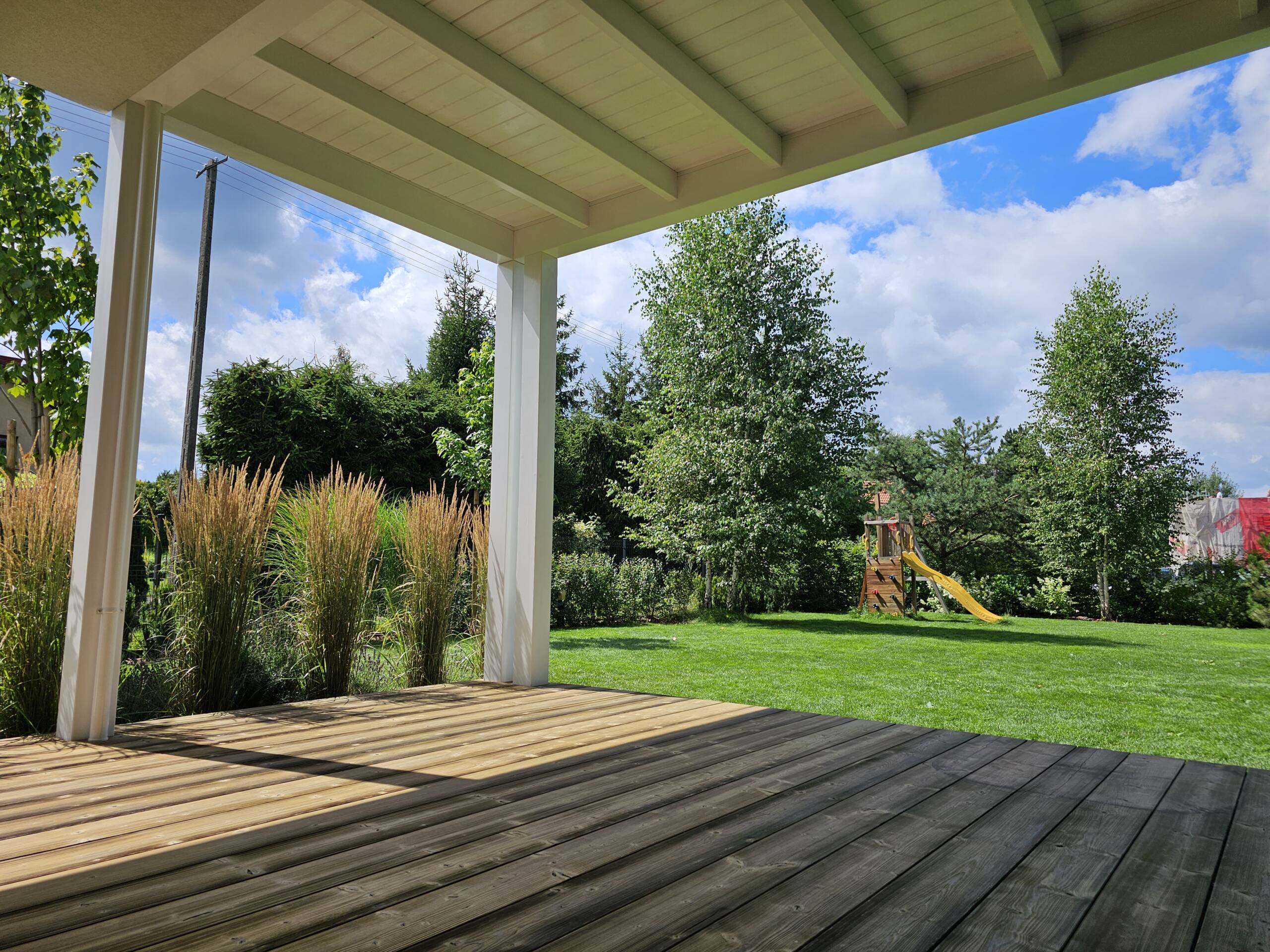 Dach ażurowy nie chroni przed deszczem, dlatego często łączy się go z dodatkowymi rozwiązaniami (rolety, markizy, rośliny pnące). To wybór dla osób, które stawiają na klimat i estetykę.